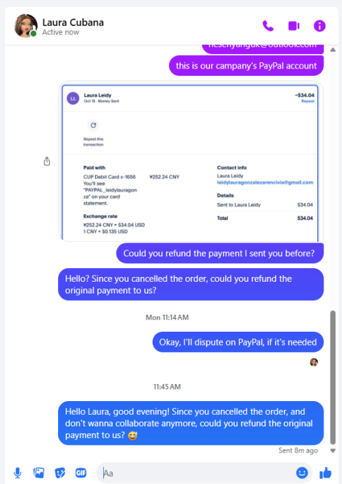 死骗子,收到钱,下完单后,FB改名字换头像,第二天取消订单