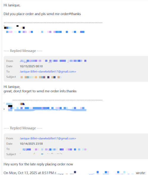 国家:美国 姓名:Janique Billet 邮箱:danekebillet17@gmail.com 曝光原因和证据等: 转账后不下单或取消订单。 提前返款,转账后各种借口理由拖着一直不下单,然后就没有回复了,骗子 邮箱/paypal:danekebillet17@gmail.com 支持曝光() 被冤枉了()